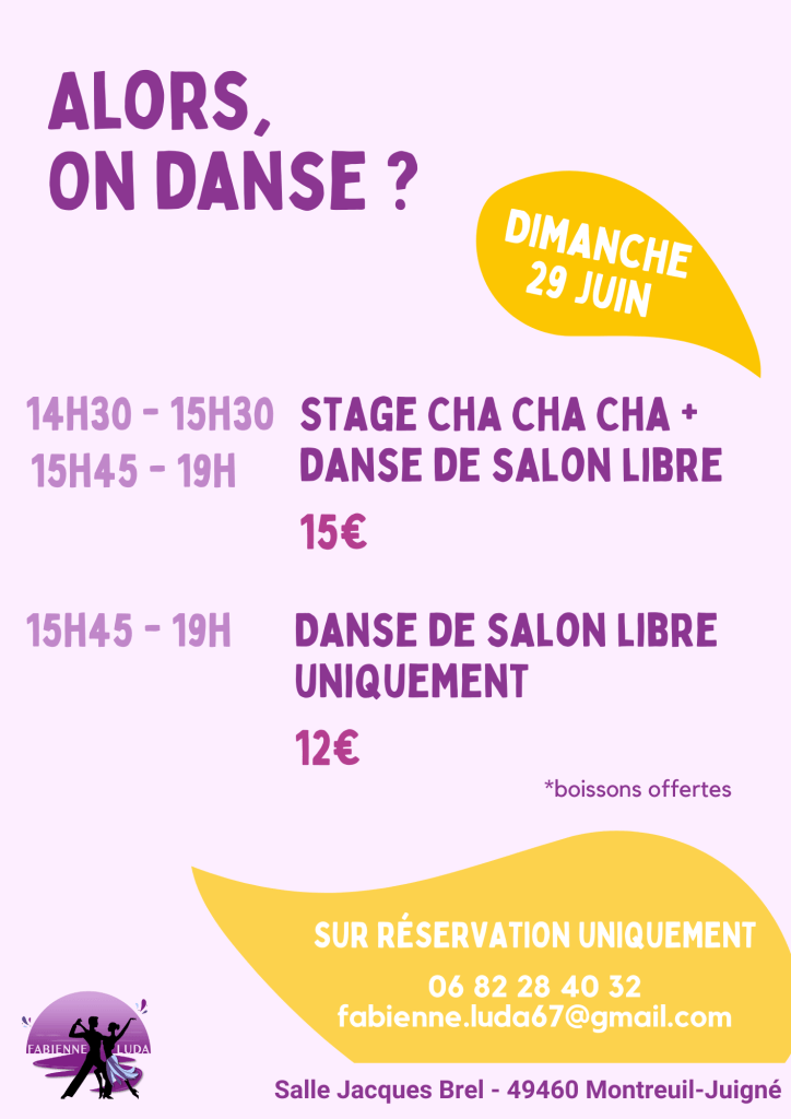 J’ai le plaisir de vous annoncer que mon prochain évènement dédié à la danse aura lieu le week-end du 21 et 22 mars 2026 à la salle A’trait Bois au Plessis-Grammoire !