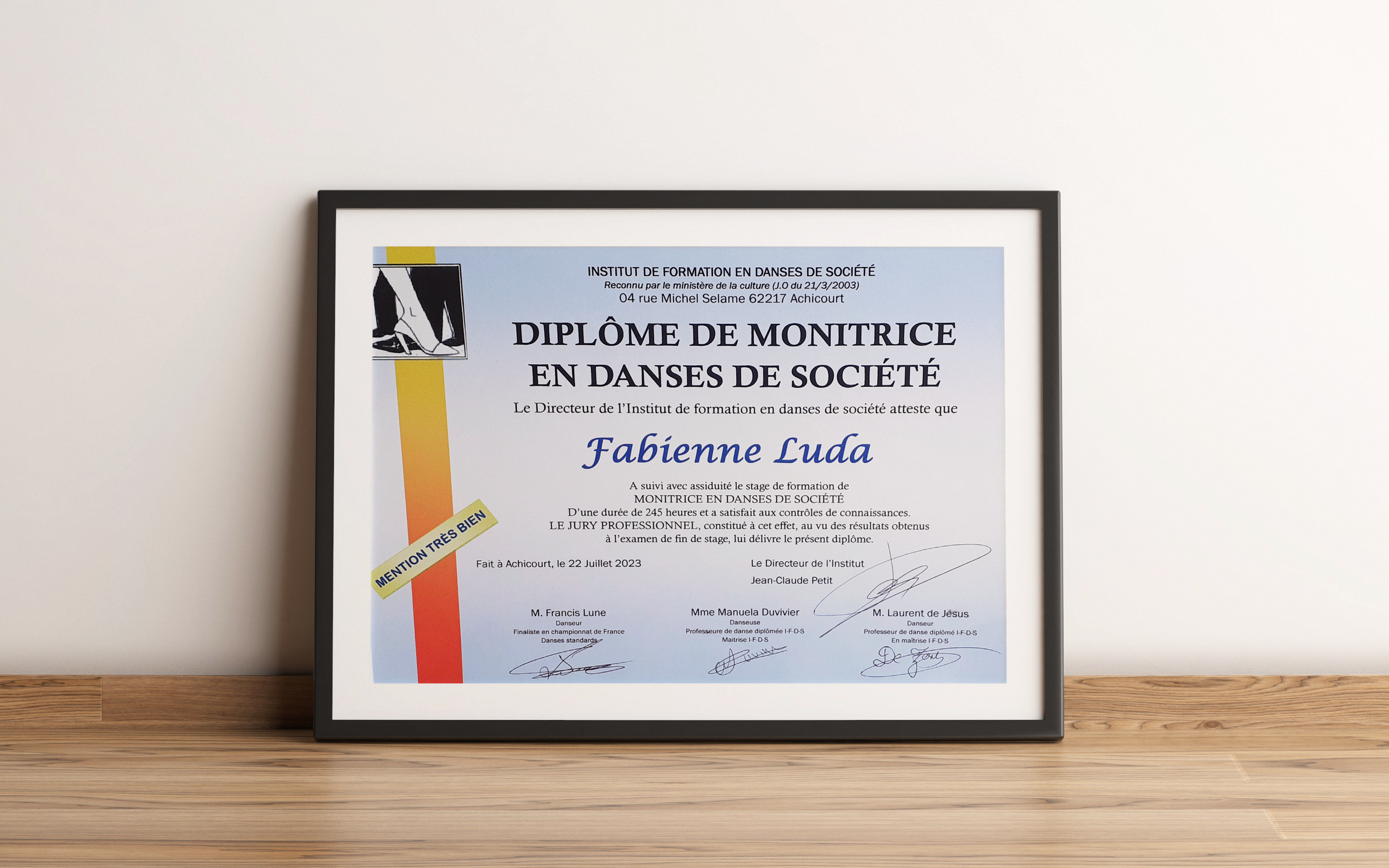 En 2023, j’ai notamment obtenu un Monitorat en Danse de Sociétés (IFDS Archicourt).