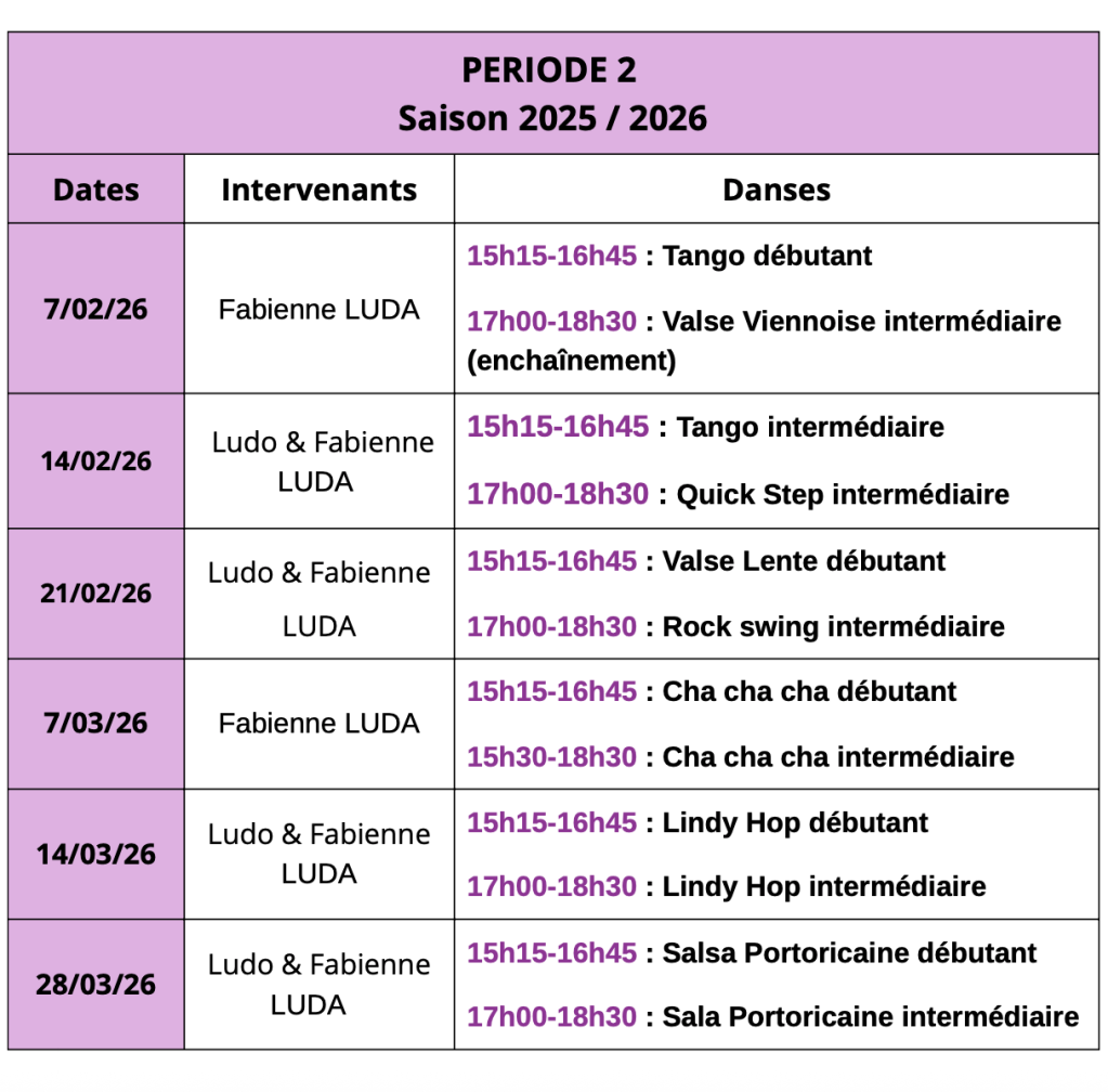 3 stages sont proposés le week-end du 21 et 22 mars dans le cadre d’un évènement que j’organise : 1h30 de Rock, de Tango et de Rumba – Pour plus d’informations et vous inscrire : https://fabienneluda.fr/evenements/